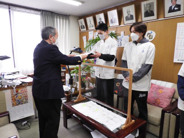今日は次期(令和5年度)学友会役員に決定した5名に、校長先生から認証状が手渡されました。