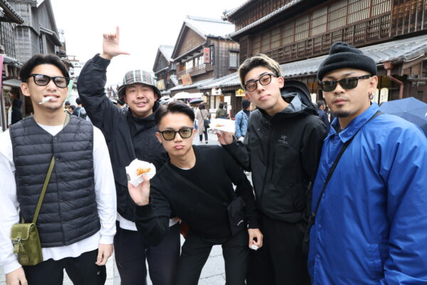 日々の感謝を新たにしてのお参りと「おかげ横丁」散策。食べ歩きやお土産探しを楽しんでいました。