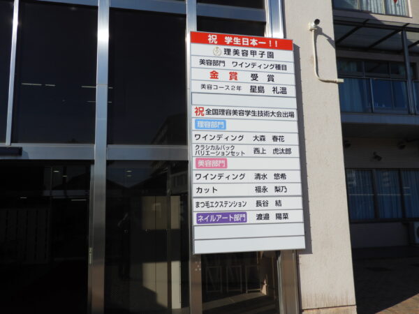 現在、掲示板には先日行われた、全国理容美容学生技術大会での成果を掲載しています。